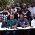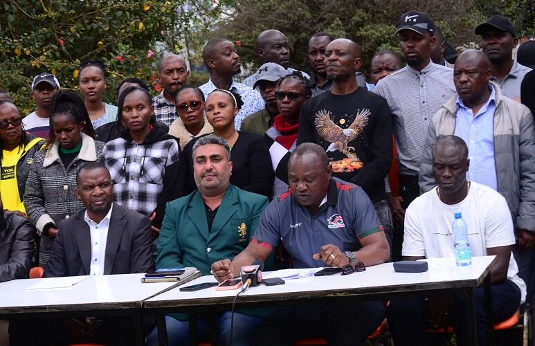 From Left- Edwin Waita -Chairman Mwamba RFC, Victor Sudi -Chairman of Kenya Harlequins RFC, Nekesa Were-General Secretary Kenya Harlequins RFC,...