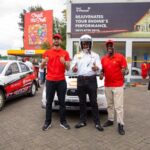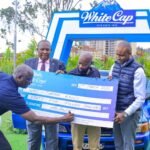 From Left -Kenya Lionesses players Ann Njeri, Sheila Chajira, Christine Kariuki (KBL Head of Mainstream Beer), and Kenya Shujaa players...